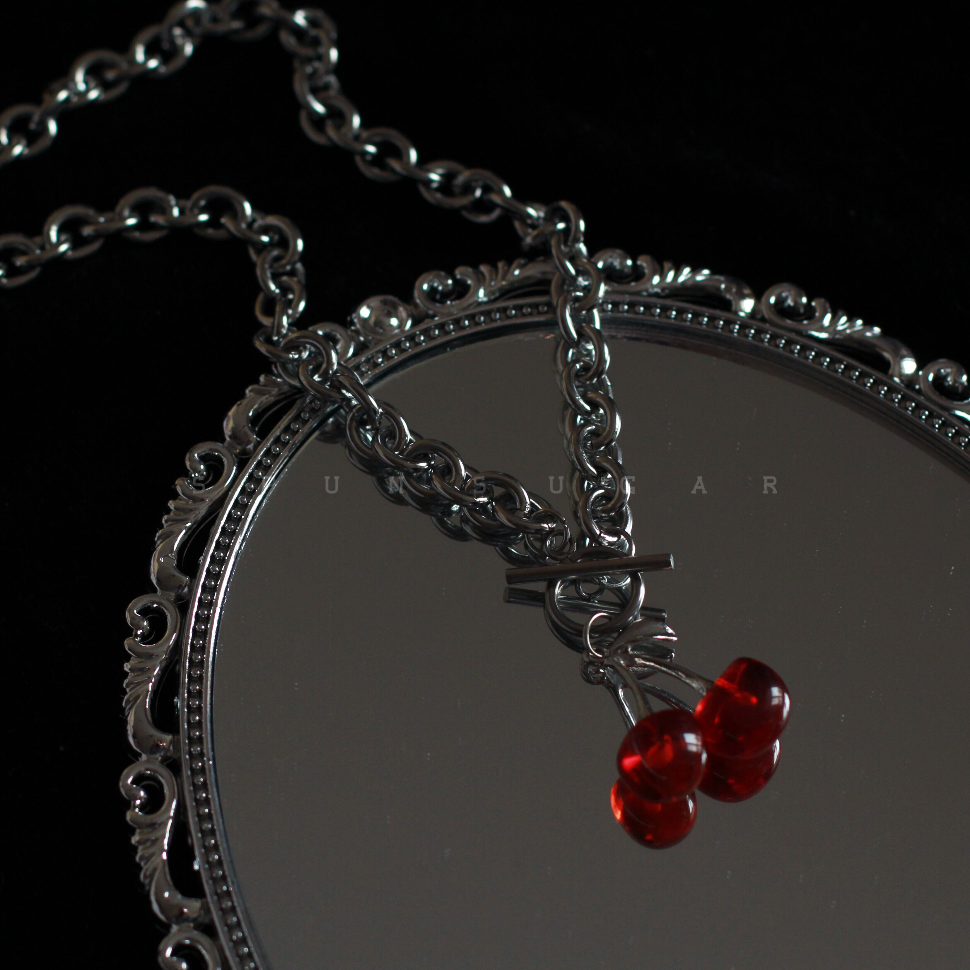 ニッチなデザインセンスブラックスモールチェリーネックレス女性ins冷風鎖骨チェーンハードウェアチョーカーネックレス SPUN_SUGAR71000544284