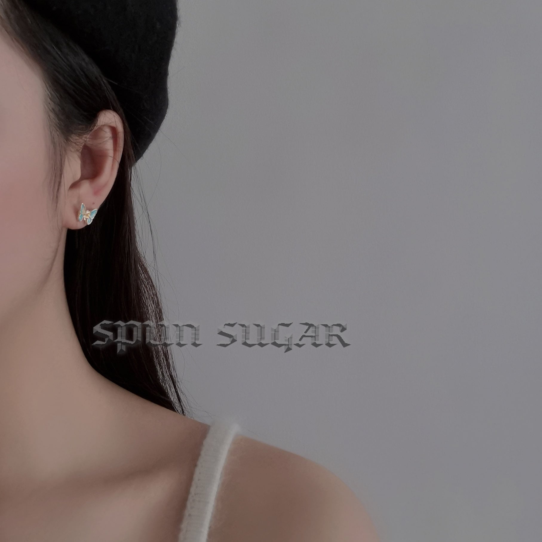 クリアランスバタフライドリームフレンチレトロバタフライスーパーフェアリー気質油絵シンプルな個性スタッドピアス SPUN_SUGAR67400852493