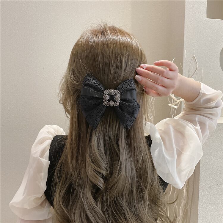 ブラックリボンヘアピン バックレッドアクセサリー トップス スプリング 春物 LACC76887892967