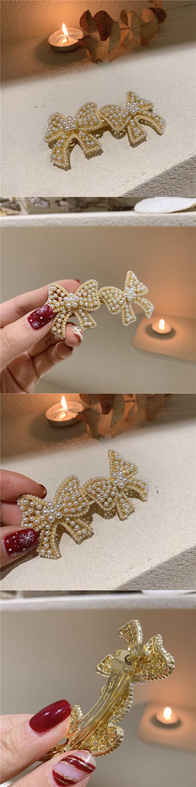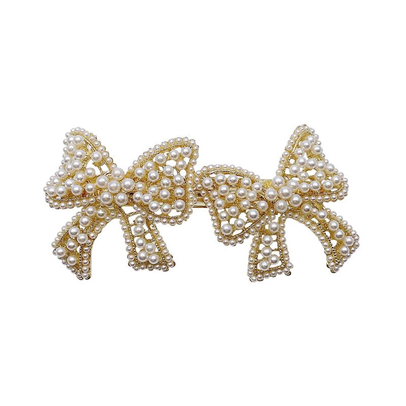 ダブルリボンパールヘアピン レッドスタンダードスプリング レトロ 春物 真珠 LACC42468525030