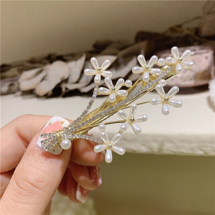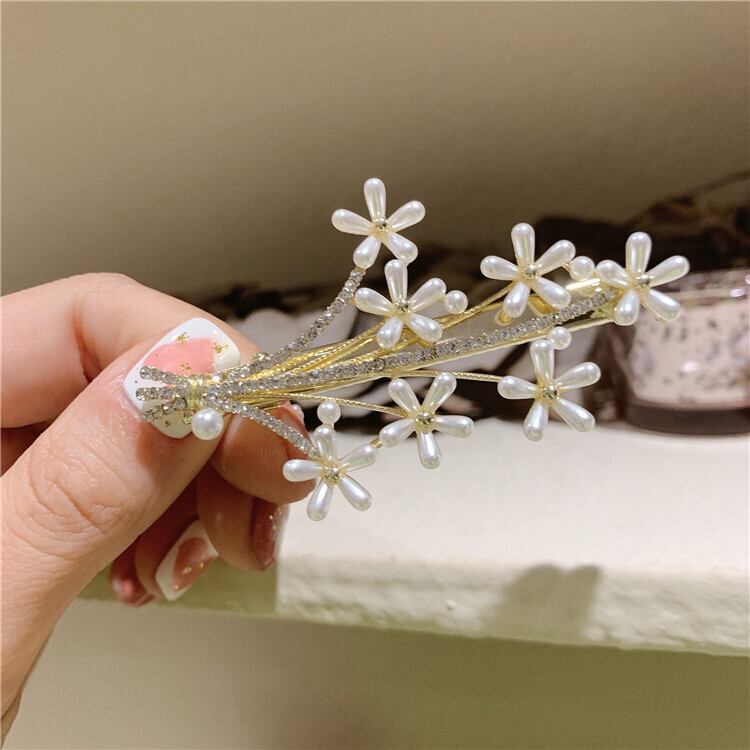 スプリングサマーパールFlowerデザイン ラインストーン アクセサリー ヘアピン 春物 夏物 真珠 フラワーデザイン LACC56146203570
