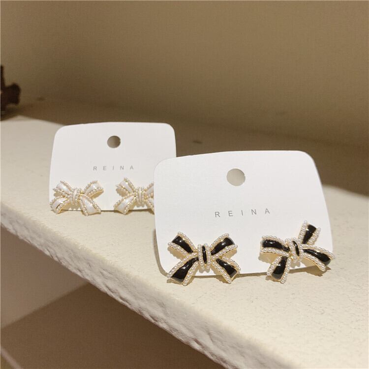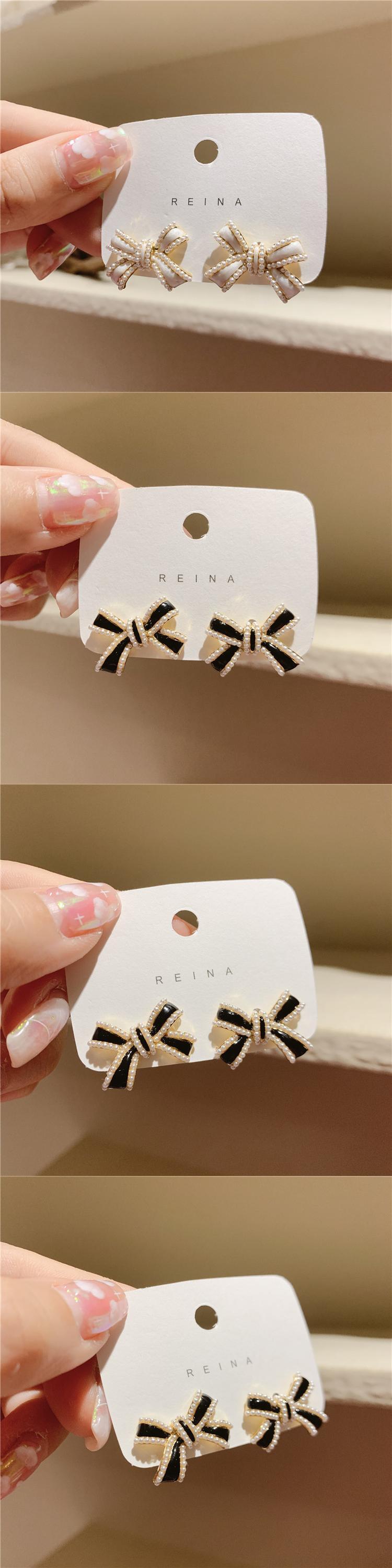 リボンブラックホワイトシルバーイヤリング 指輪 銀 LACC48236282029