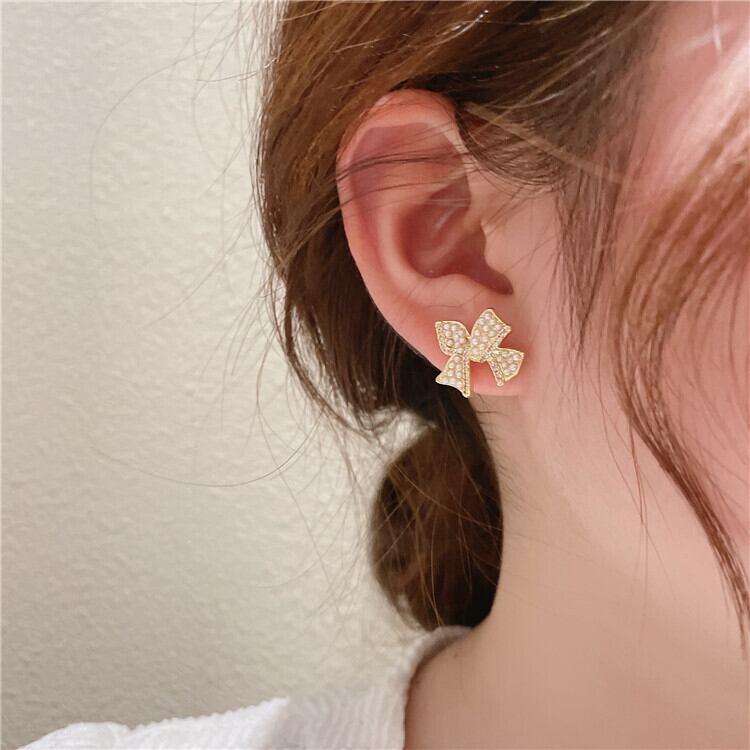 パールリボンシルバーピアス イヤリング 大人ガーリー スウィート キュート カジュアル 真珠 指輪 銀 LACC36188140055