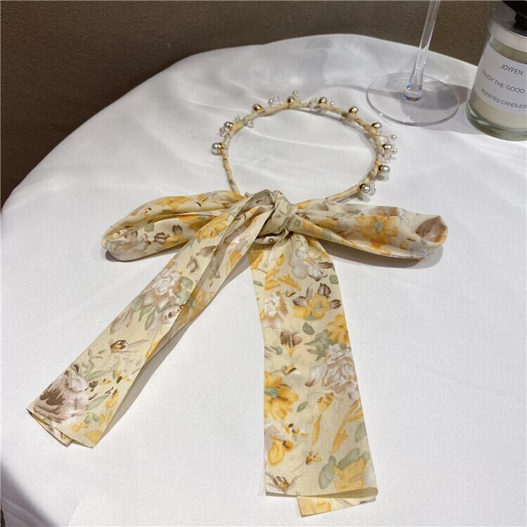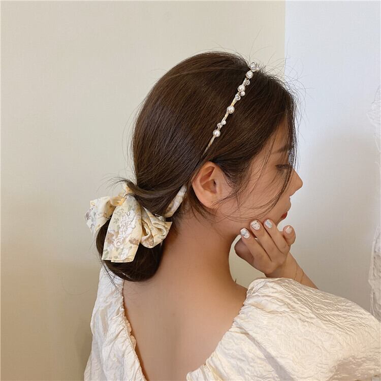 リボンパールラインストーンクロスヘアバンド ヘアピン エレガント ヘアアクセサリー 真珠 LACC30975190437