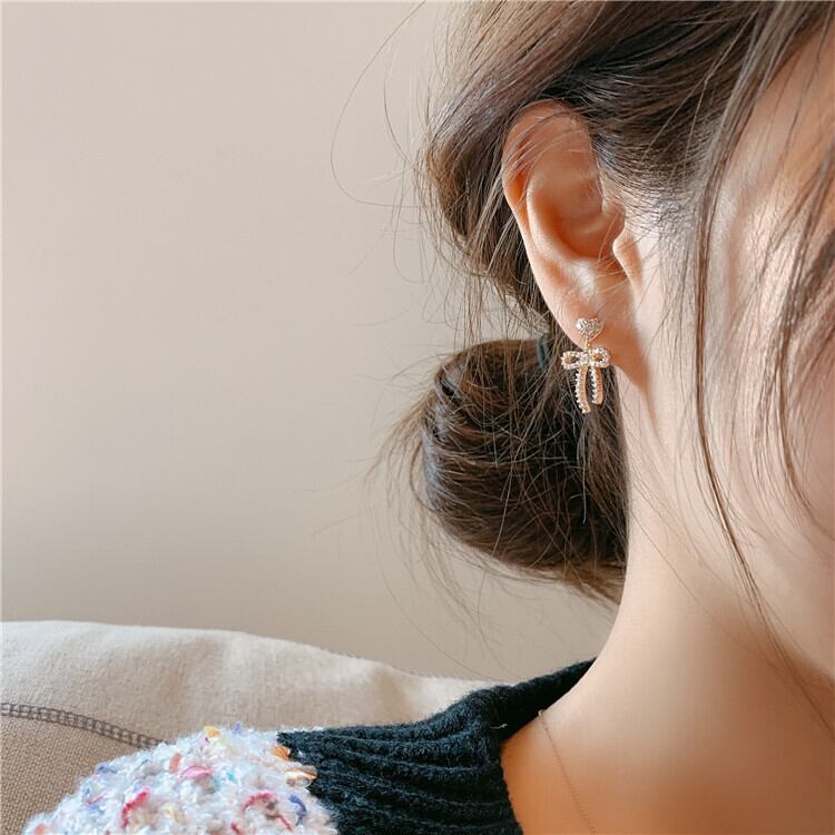 シルバーイヤリング ロング リボン 大人ガーリー スウィート キュート カジュアル 指輪 銀 LACC34793640485