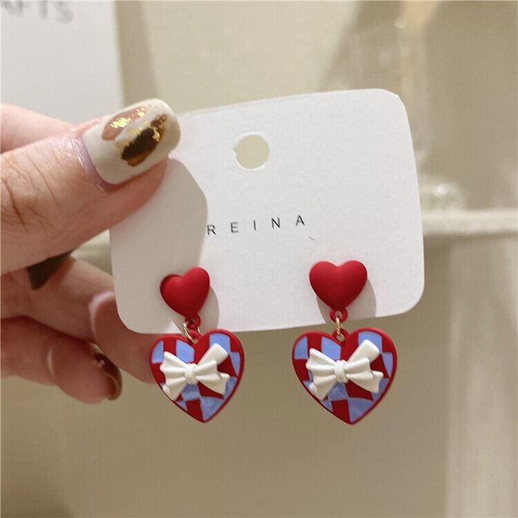 オータムウィンターセーター 格子柄レッドイヤリング 秋物 冬物 指輪 LACC81790289071