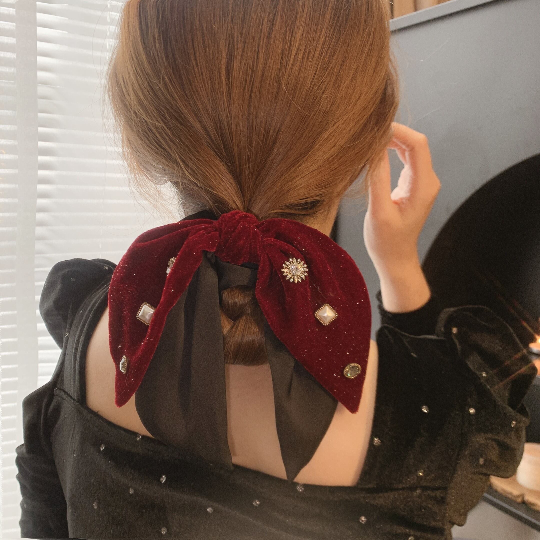 リボンヘアバンド オータムウィンターベルベットレッドリング 秋物 冬物 指輪 LACC8444934553